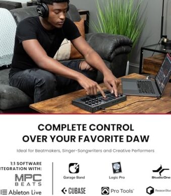 Akai Professional MPK Mini MK3 – 25 Key USB MIDI Keyboard Controller With 8 Backlit Drum Pads, 8 Knobs, Music Production Software and Native Instruments Sound Package (NKS Integration), Grey